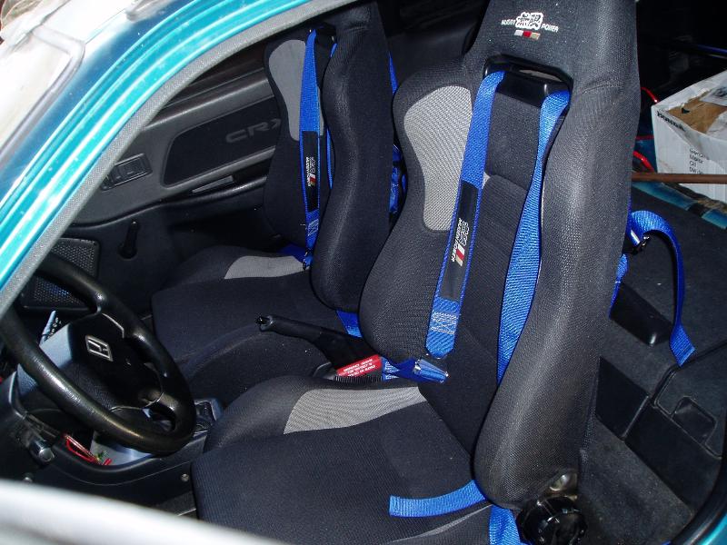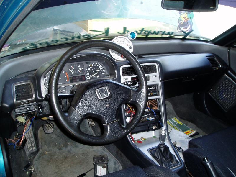 Mugen Bucket Racing Seats w/Mugen 4-Point Harness'(custom seat brackets by bagmazdog), Aluminum Dash Pieces, Mugen Shift Knob, OBX C-Pillar Bar, 5" Autometer 10,000 RPM Tachometer w/Shift Light.