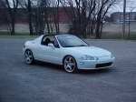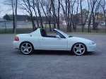 D15B7 1.5L non-VTEC Bored .30 over making it a 1.7L... Blueprinted and balance, head has been ported and polished... 4 Speed Auto Tranny... Cold air intake, and a Power Tone muffler. Also a 65hp ZEX nitrous oxide system. Before the motor was bored and all the motor work was done it ran a 16.19 @ 87.9 mph, in the 1/4 mile, which I hear is not too bad for a 1.5 with an auto.