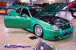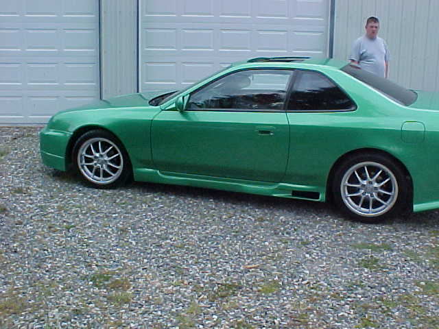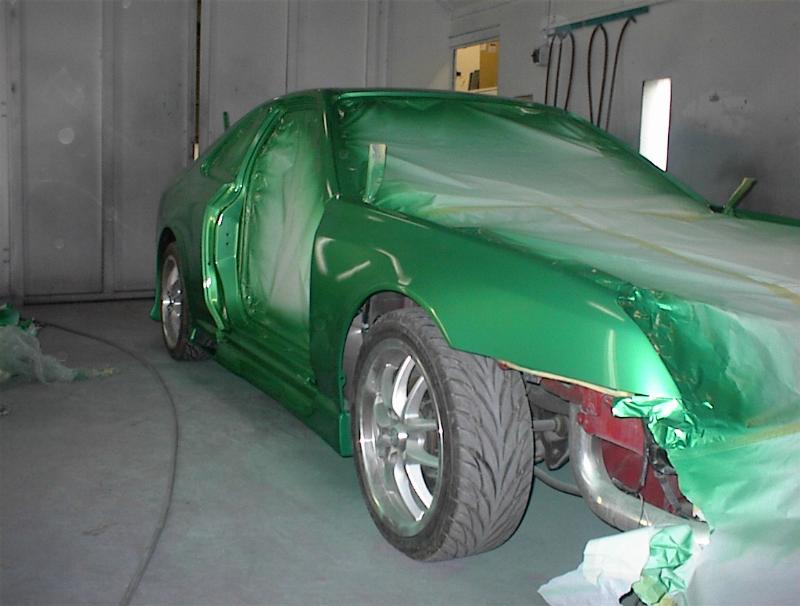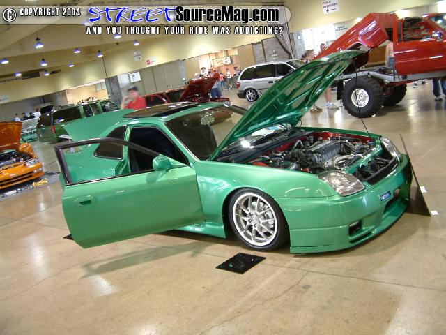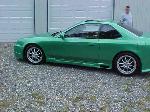 custom green paint with green pearl and gold flakes. R33 full body kit. Back bumper and side skirts molded. Trunk lid shaved emblem and trunk lock.