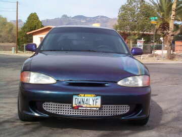 panasonic CD 801u deck, 2 pairs of Premier Nickel mids and tweets, three Rockford Fosgate Power HX2DVC 12's in a custom fiberglass box in the spare tire well, Rockford Fosgate BD1000 bass amp, Rockford Fosgate 800A4 high amp, Rockford Fosgate 1.0 farad digital cap, Necvox indash DVD player, two 5.6" LCDs, and one 7" LCD Plus one hell of an alarm!