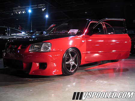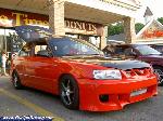 shaved door handels, antend and custom shaved hatch with frenched plate, sunami front bumper, ath rear lip, custom side skirts, 2 tone black and red paint job and cross drilled rotors