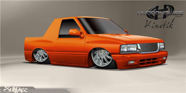 Smooth fiberglassed floors, 2 seater, raised rear section with "trunk" lid to hide hydros and axle, custom body lines inside rear bed area and rounded corners with a twist, it will have a custom dash built by Tre5 customs and all color matched to exterior