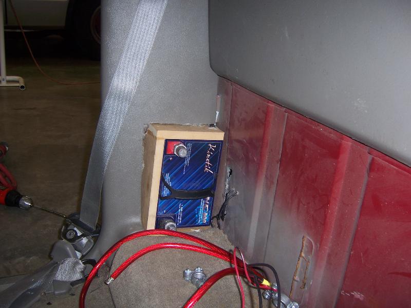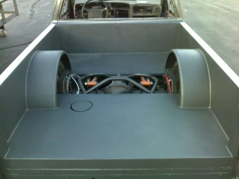 Alpine IDX-404 double din touchscreen, 3 JL 6W3 subs in a fiberglass console enclosure powered by a JL 500/1 and a HC800 Kinetiks Battery
