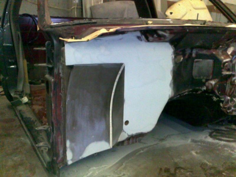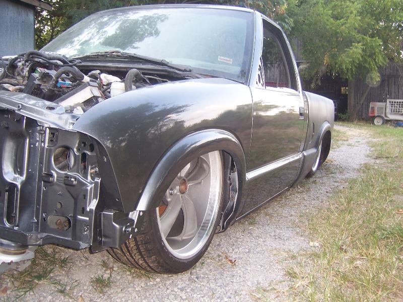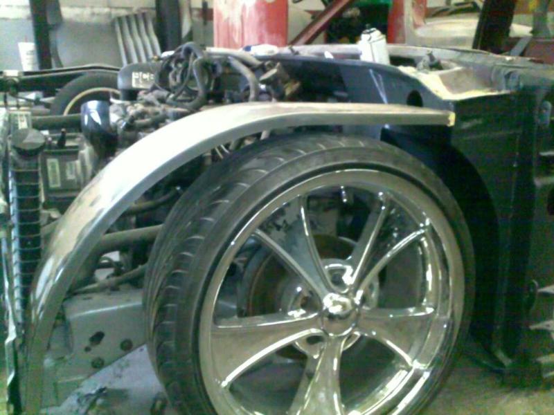new front clip (grille, bumper, headlights and corners) and 8000K HIDs...shaved gas door, shaved taillights, molded rollpan, caddy tails, Goodmark Steel Cowl hood