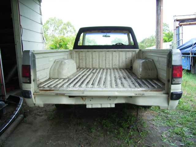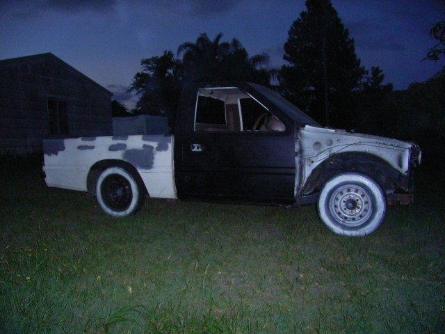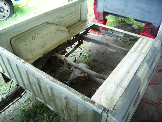shaved bed, inc. fuel door, tie downs and the top of the tail lights, will have custom bed floor, and a combo skin, with nuber plate in the center, cab is now in primer ready for paint