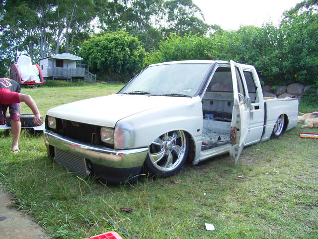 shaven handels, airiel, tailgate, tiedown hooks, frenched in number plate. 2 1/2 inch body drop,tubbed firewall and I also capped the sills. An now a suicide door. Shaved parkers. Custom front fenders. Custom hood.