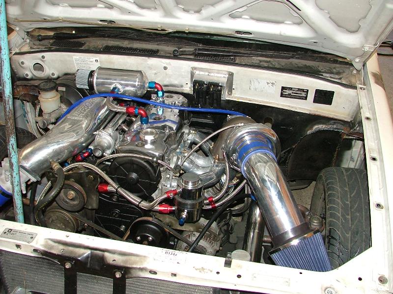 2.6 litre motor with a GT30/40 turbo, Custom HPC coated turbo manifold and dump pipe, 550cc injectors, Custom fuel rail, front mount intercooler, Haltech computer, running 20psi