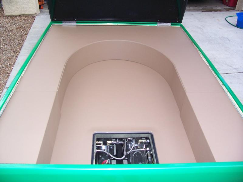 Juiced: 8"s up front & 6"s in rear , 3 link, 2- all Chrome Pro Hopper Pumps, 4 dumps, 4 batteries (in front of bed). Hard lined front and rear. Relocated radius rod's, flipped ball joints, custom lower control arm's, raised driveline tunnel.