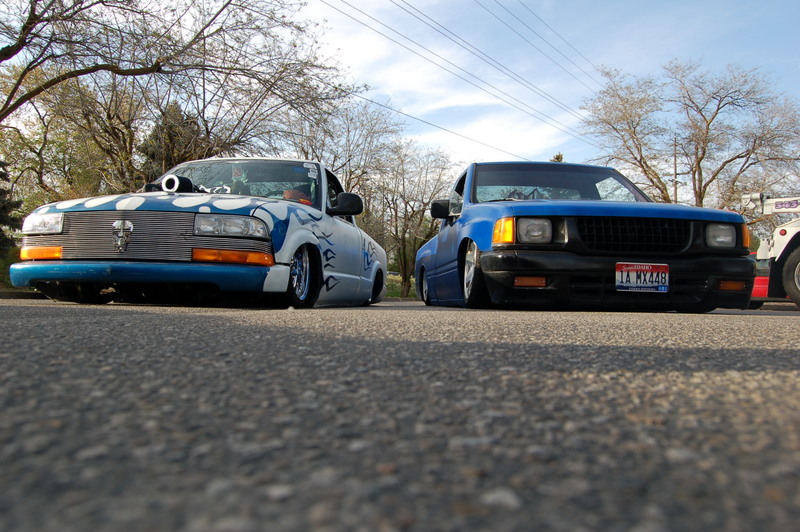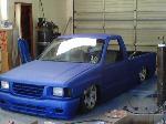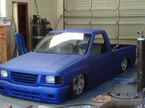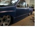 Body dropped 3 1/2 shaved: doors, gas door, tailgate, bed seams. woking on sheet metal bed floor,full skin, shaved: everything exept body line, newer style front end , blue prime