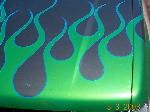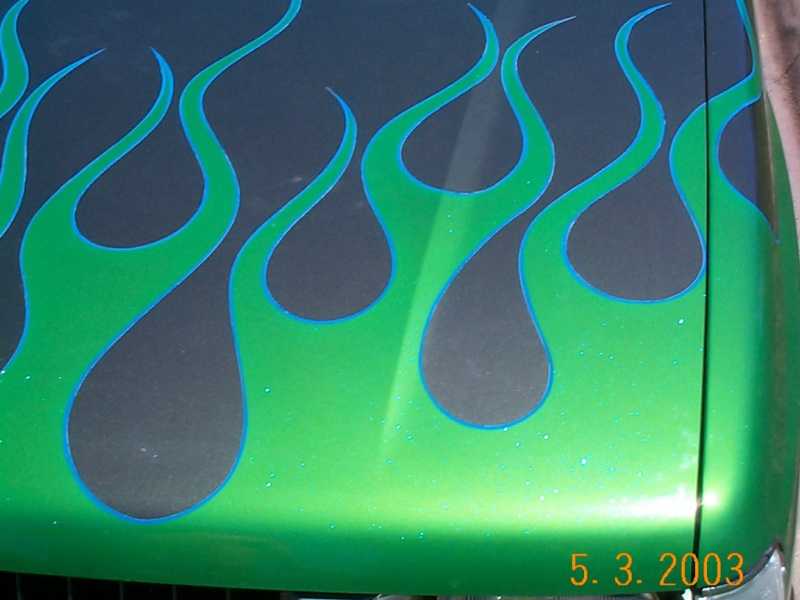 Dark Metalic green with lime green (with blue flake) flames.