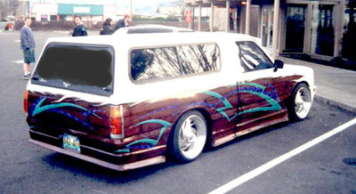 Molded Ground effects, Full Phanton grille, Shaved Handles-antenna,Modified Toyota / Izuzu bumper. Full repaint w/ Mural