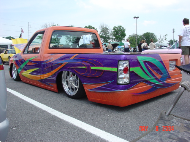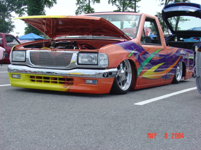 Checkmate bed cover, StreetBeat sliding rag, Rodeo headlights and bumper valance, Custom paint by Kal Smith. Body mods by Kevin Holland of Kunfuzed Customz; Gulfport, MS. Car Wear clear lenses.