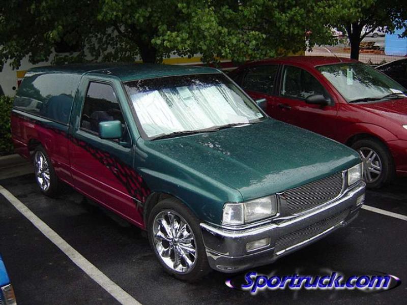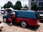 Rodeo chrome grille with Trenz fully polished billet insert, Rodeo headlights, Toyota 4wd chrome bumper, Toyota 4wd chrome valance with Trenz fully polished billet insert, clear turn signals and marker lights, Leer topper, Amigo rear end with swing out tailgate, steel roll pan, frenched tag box in tailgate, shaved antenna, shaved hood squirters,shaved third brake light, shaved door handles, shaved key locks,shaved tailgate handle, shaved roll pan, and shaved body seams, custom paint