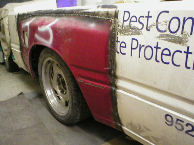 paint,stereo,interior work to be done before spring, yeah right I LOVE PRIMER. That silver longbed will be the donor truck for a clean bed, and front sheetmetal w/ 95 Doors and mirrors. Im going to hang the older metal on that and prime it and cut the roof off for summer :)
