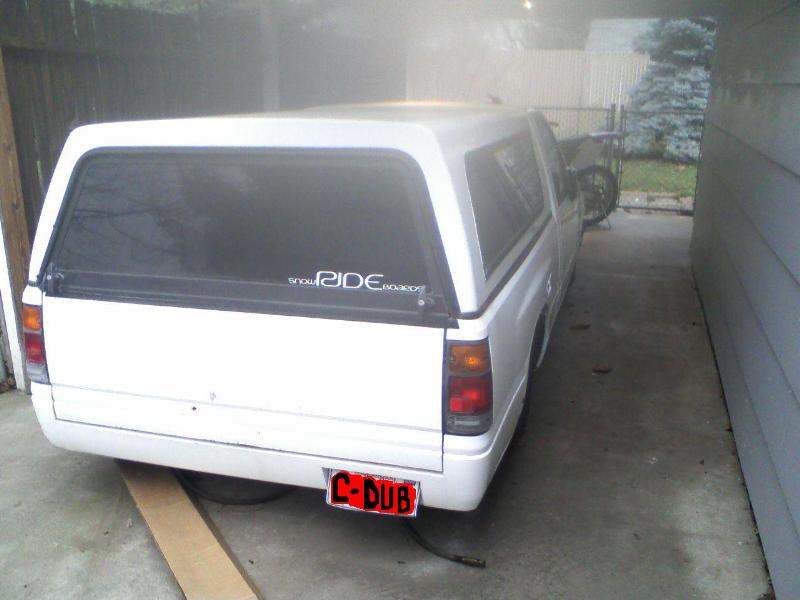 White with matching canopy, shaved door handles, relocated tailgate handle, Honda Passport frontend, and a roll pan.