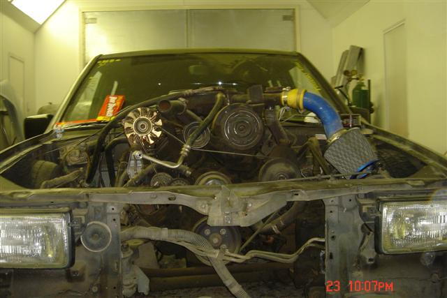 3.1 with a ton of it sticking above the hood, custom cut honda intake tube.