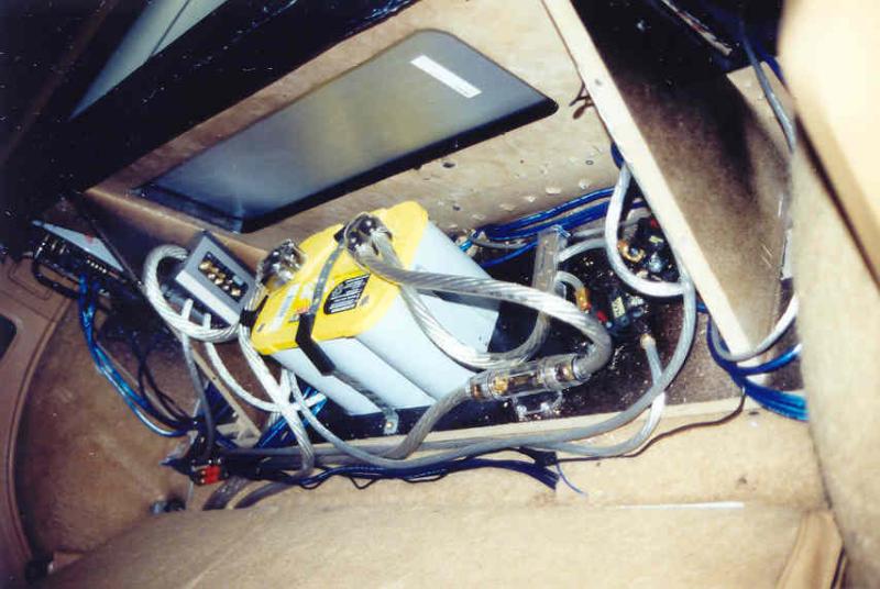 100 feet Stinger HPM 0GA Power/Ground Wire / 25 feet Stinger 4GA Speaker Wire / Phoenix Gold VB200 200amp Circuit Breakers / Phoenix Gold ZWF500 Wafer Fuseholder (0ga) / Phoenix Gold XFG250 250amp Gold Wafer Fuses / Phoenix Gold ZEROpoint Distribution Block // PPI PCX 4125 // Audiobahn A2300HCQ // MB Quart QSD 216 Comps // Audiobahn ALUM12Q (POS! they sUCK! blew in 1 day)