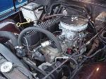 258ci I-6, 4-speed, MC2100 carb, aluminum finned valve cover, and hedman header into purple hornie.