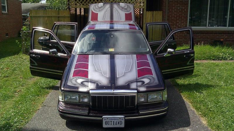 Black base with HOK candy red, silver, ghost flames, water drop effects, fan's