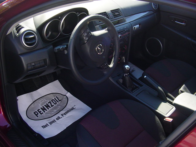 cloth seats with red inserts, black carpet. Blue led interior lights.
