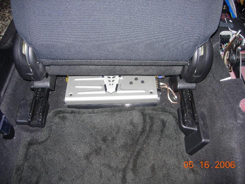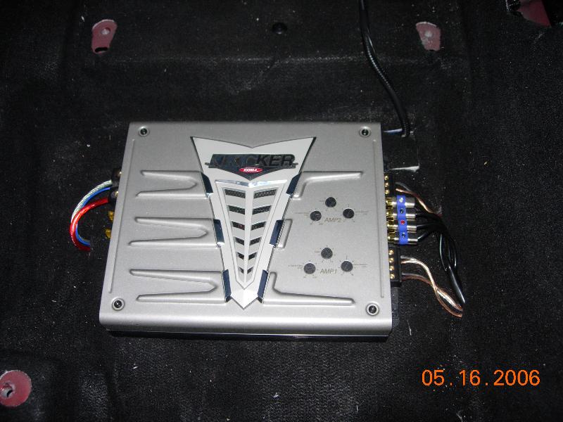 Quantum 800 rms 12" sub, powered by a 600w kiker amp. Custom made sealed box.