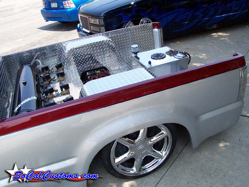 Shaved Door Handles, Tailgate, Rollpan, Custom 2 tone Red/Silver paint, Chrome Grille, Bumper/Valance