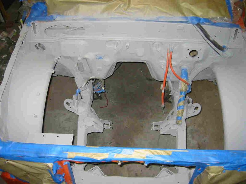 Engine bay primered, upper firewall smoothed