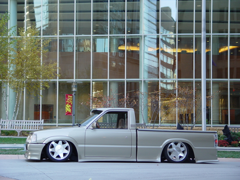 hmmmmmm, build a new mdf fiberglass box; do the headliner, visors, and pilars in velvet; quieter exhaust with cat; sheetmetal bed w/ inner fenders; inner fenders in the front; engine swap sr20de n/a or turbo haven't decided yet; new front end maybe 4-runner chrome bumper and painted valence; When i finish all that... I might rip the kit off, shave a few items, and paint it lexus rx330 silver/gold or an audi bronze.