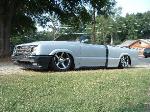 The suspension consists of a full air-ride setup by STR8 TWIZTED CUSTOMZ, with 4 1/2 electric valves and 1/2 airlines, NEW Viair 480 compressors, and a 1 5 gallon tanks. It also has a Ford Courier rear shortened drive shaft with a reverse 4 link with bags on the bars.