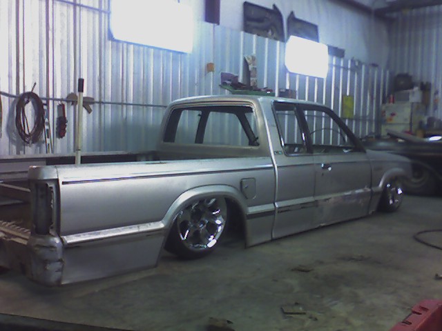 stock floored...pinch weld cut off...shaved everything...35x35 ragtop...suicide doors...wood bed kit