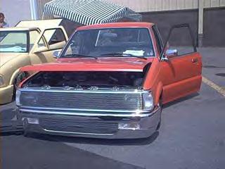 Chrome Toyota 4 Runner bumper and valence with Billet insert, Refabed bumper brackets from FBI, Polished grille with phantom insert,Recessed Headlights, Chrome mirrors, Clear corner lamps, Clear bumper lenses, california combo flush LED''s, 17 x 7" Niche Bahn''s 6 LUG,2" Body Drop,Shaved emblems gas door antenna rear end, Flush tonneau cover, (sliding rag top comin soon).