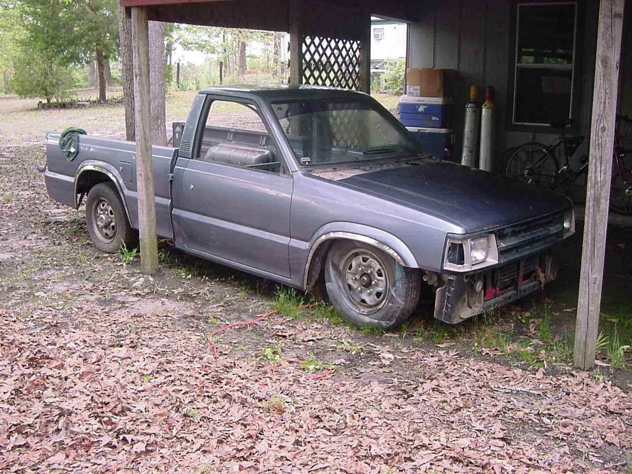 if you live in alvin or the houston area you may know this already. This truck got abandoned in a field behind a shop after the guy I paid to work on it quit working on trucks. It got halfway bodydropped then dumped in a field. I wanted to puke when I picked it up. ( I live three hours away from that shop). Sombody stole everything they could get unbolted, and there were ant beds growing into the cab from the body laying out in the dirt for two months. Its pretty much ruined now but after I finish my other Mazda I will make it awesome again!