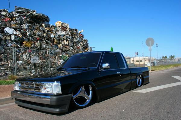 Shaved fender emblems. Roll pan. Black paint.
