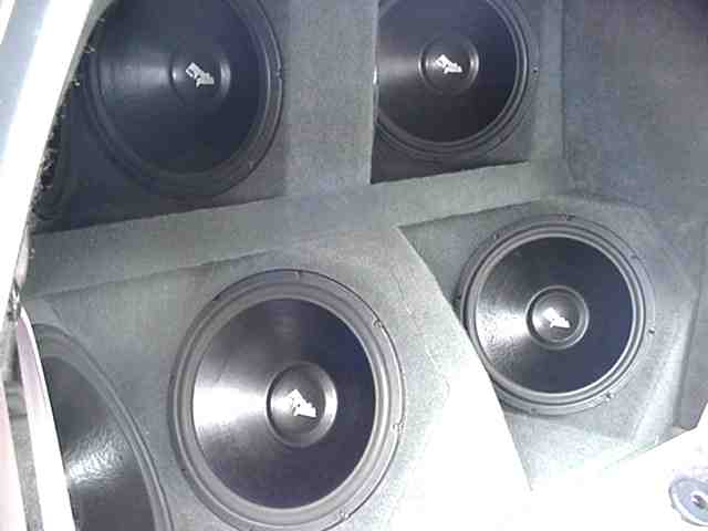 eight 15" Punch subs - Diamond pattern in custom panel (3 cubic feet per speaker)