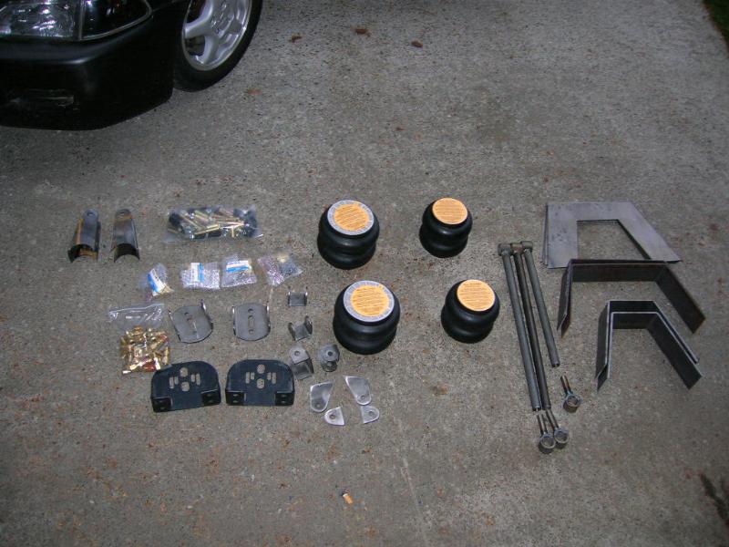 Slam Bags, 62's and 72's; FB(4) 3/8" smc valves, 1/2" line, slim 5 gallon tank, viair 460c, KP 4-link, bagged off the 4 link. Will have pics real soon.