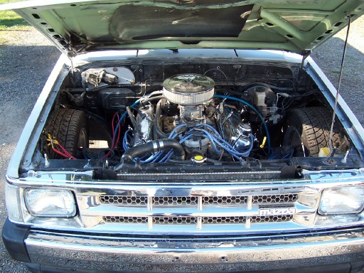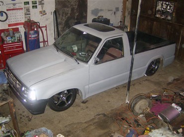 Shaved Keyholes, antenna, handles, gas door, badges, cowl,Drip rails, and b pillar plastics, tailgate is welded shut and rollpan welded on, smooth bedfloor with hand fabbed tubs. Chrome grill & bumper, clear corners & signals.