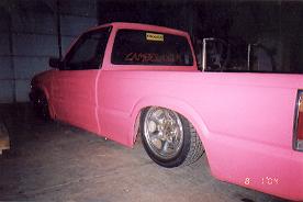 shaved doors,chrome bumper,grille,pink primer.layin rocker!