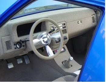 Custom door panels, console, dash, Mazda 626 buckets, interior covered in tan tweed from roof to head liner