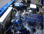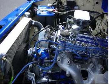 Shaved firewall, engine block painted HOK Trublue, chrome valve cover, Webber carb. Optima blue top battery, custom allum. radiator, ceramic coated header, and many other cosmetic accesories.