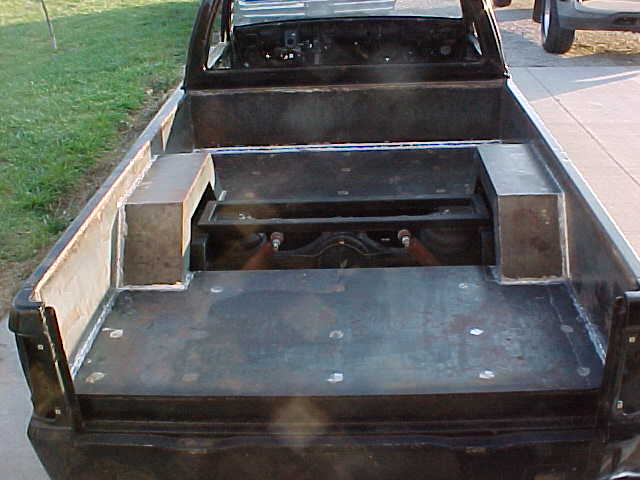Smooth Bed Floor. Just pulled it out of one shop thats had it for a year, and took it to a new shop thats getting a lot of work done. Grant Fab Tail-Skin, tailight and corner fillers, shaved gas tank door and handles. 2600i Hood with some PPG Honda Civic SI Blue to be sprayed soon. (Might get some big Flake thrown in the mix for eyepoppin flavor.)