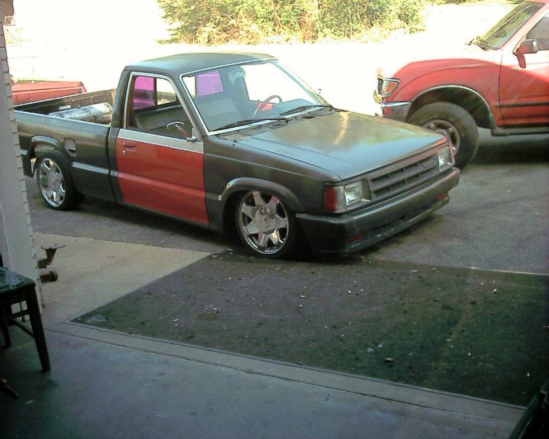 Previously dog food, no carpet, dirty as hell. Now, bench seat and mexican blankets, airbrushed and shaved dash pieces, red Grant steering wheel, short shifter, billet rearview spiderweb mirror. Have old dash out and smoothed, ready to prime, paint, airbrush, and stripe. All plastic interior pieces have been painted flat black. Flat black door panels...have flat black carpet just havent put it in yet.