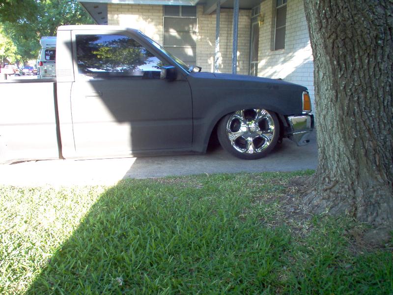 4x4 sheet metal, flat black paint, shaved emblems, sheet metal bed, and toyota bumper