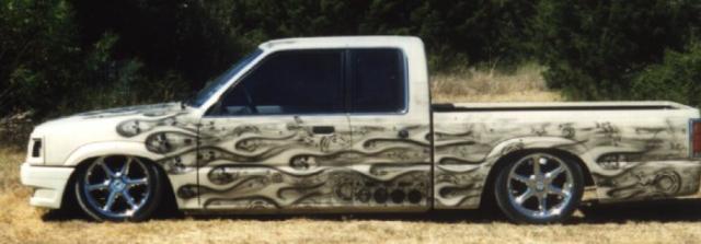 air suspension, older 1980 mazda b2000 rear, custom made drive shaft.