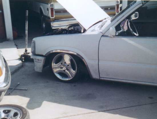 will have 4-wheel HYDRAULICS,8 dump 1 pump manifold, 4-link,chevy s-10 rearend,dropped spindles, fliped ball joints, big mandrall bent notch, relocated strut bars,billit front rotors to change over lug pattern