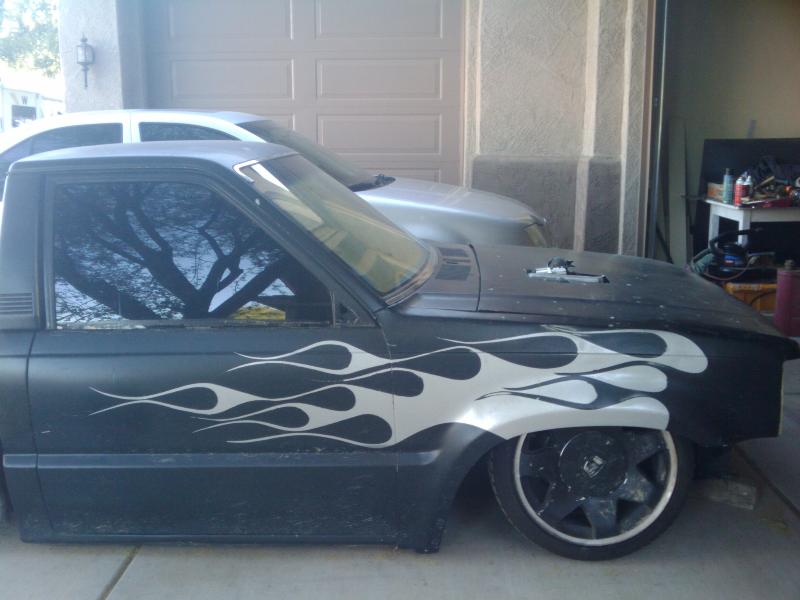 Shaved fenders, doorhandles, gas door, and shaved tailights with cadi lights. 2 1/2" traditional body drop.
