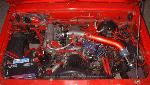 2.2l fuel injection, anodized red custom intake. fender wells cut out, red and chrome all over, oh and its an automatic, (good for hittin switches)