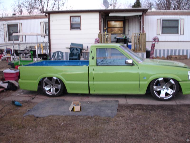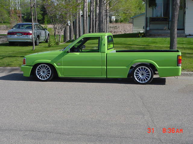 fully shaved crome bumper and and chrome mazda grill it is lime green now(thinking about neon blue graphics on it in a flame soon)