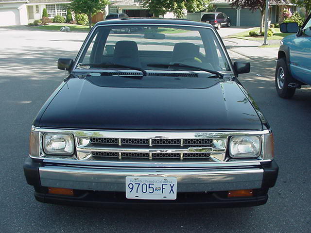 black soon to be primer, frenched plate shaved tail gate handle shaved plastic vent things behind windows. chrome grill and bumper clear tail lights