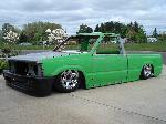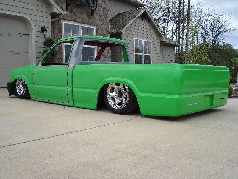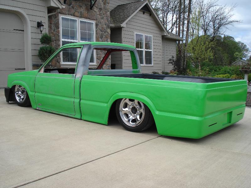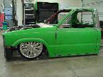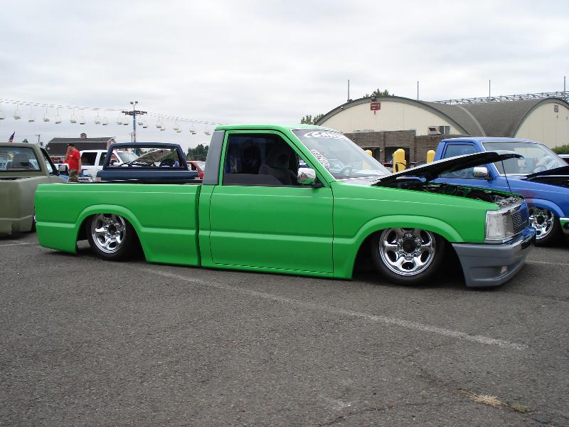 Body-dropped 3-inches / shaved handles, emblems, key locks, antenna, rain gutters, gas door, taillights, tailgate, b-pillars, wiper cowl, front corners, mirrors and body seams / door sills / FBI tailgate/roll pan skin combo with 10-inch flush mount LED taillights / Grant Kustoms weld on pillar shavers / Grant Kustoms one piece Toyota 4x4 bumper made to match the fenders / custom inner fender wells in engine compartment / fully shaved firewall - relocated brake booster behind dash / B2600I hood / relocated gas door in bed / took out all bedliner so the bed can be painted.