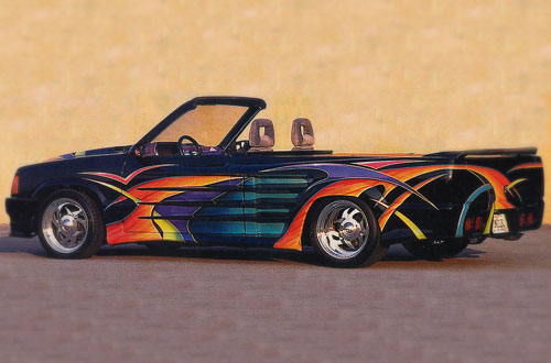 Graphics and airbrush by me. Wide-body mazdarossa kit. Convertible, custom hood scoop, diamond tilt hood, custom made tail lights, hand made fog lights, shaved body lines, frenched antena, shaved tailgate handle